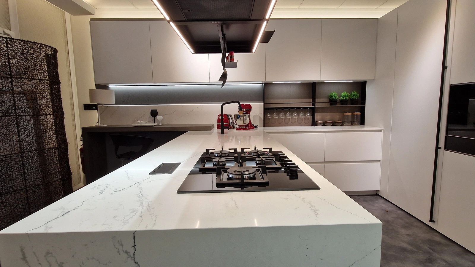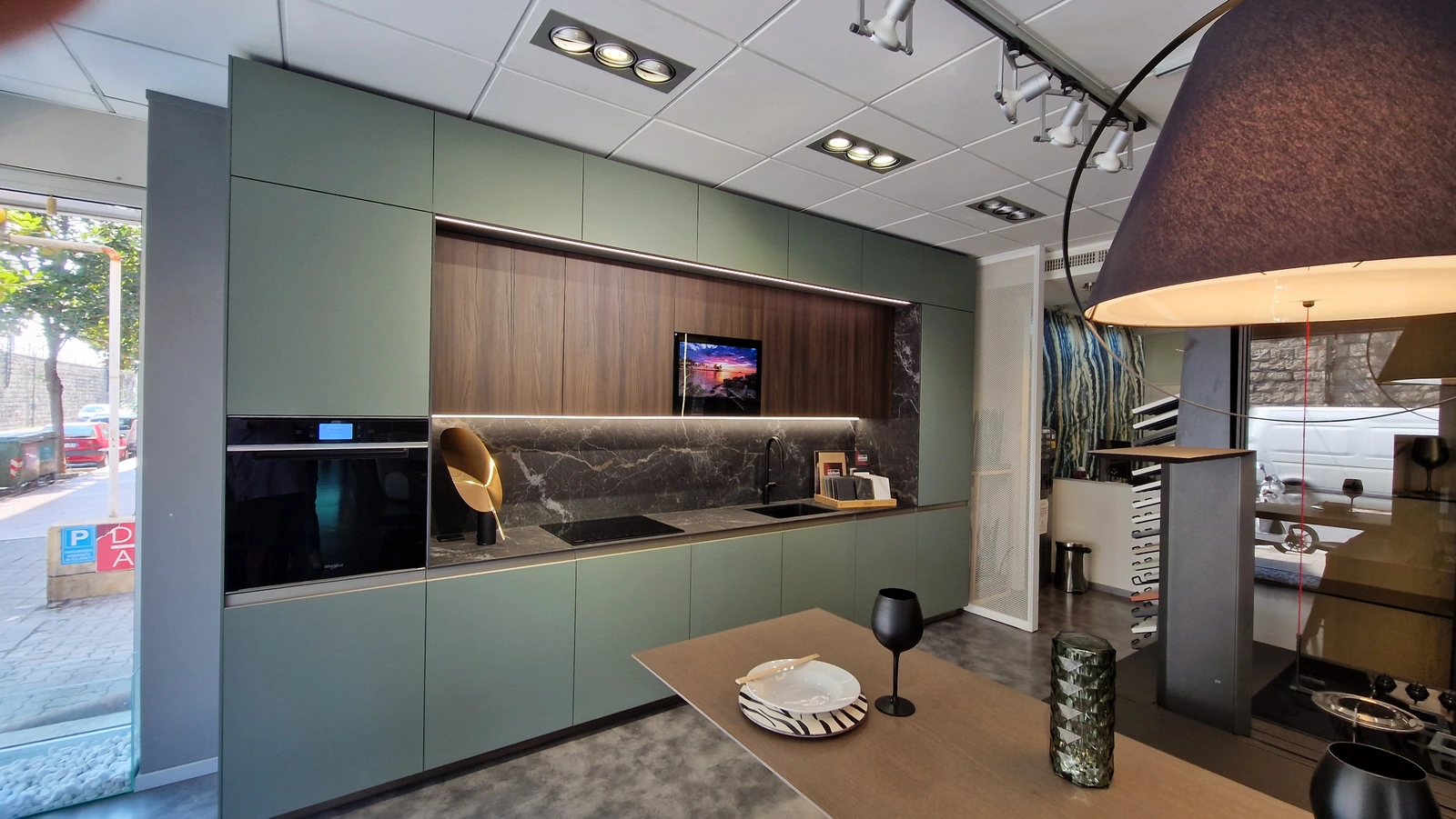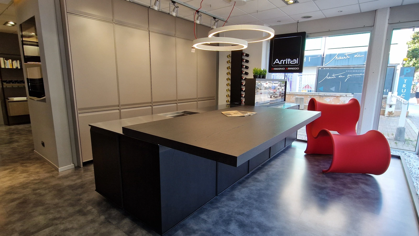 Gran parte dello spazio espositivo è dedicato alle cucine. Sono esposte composizioni importanti e sempre attuali, che permettono di toccare con mano la qualità dei prodotti esposti e di valutarne funzionalità e possibilità progettuali.