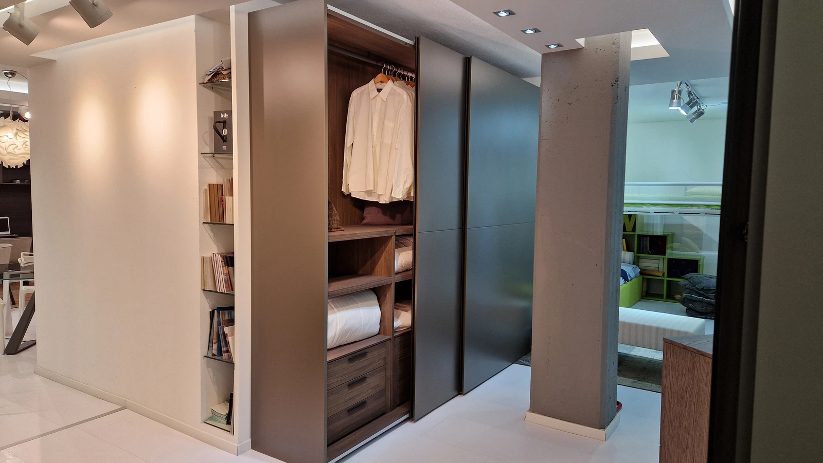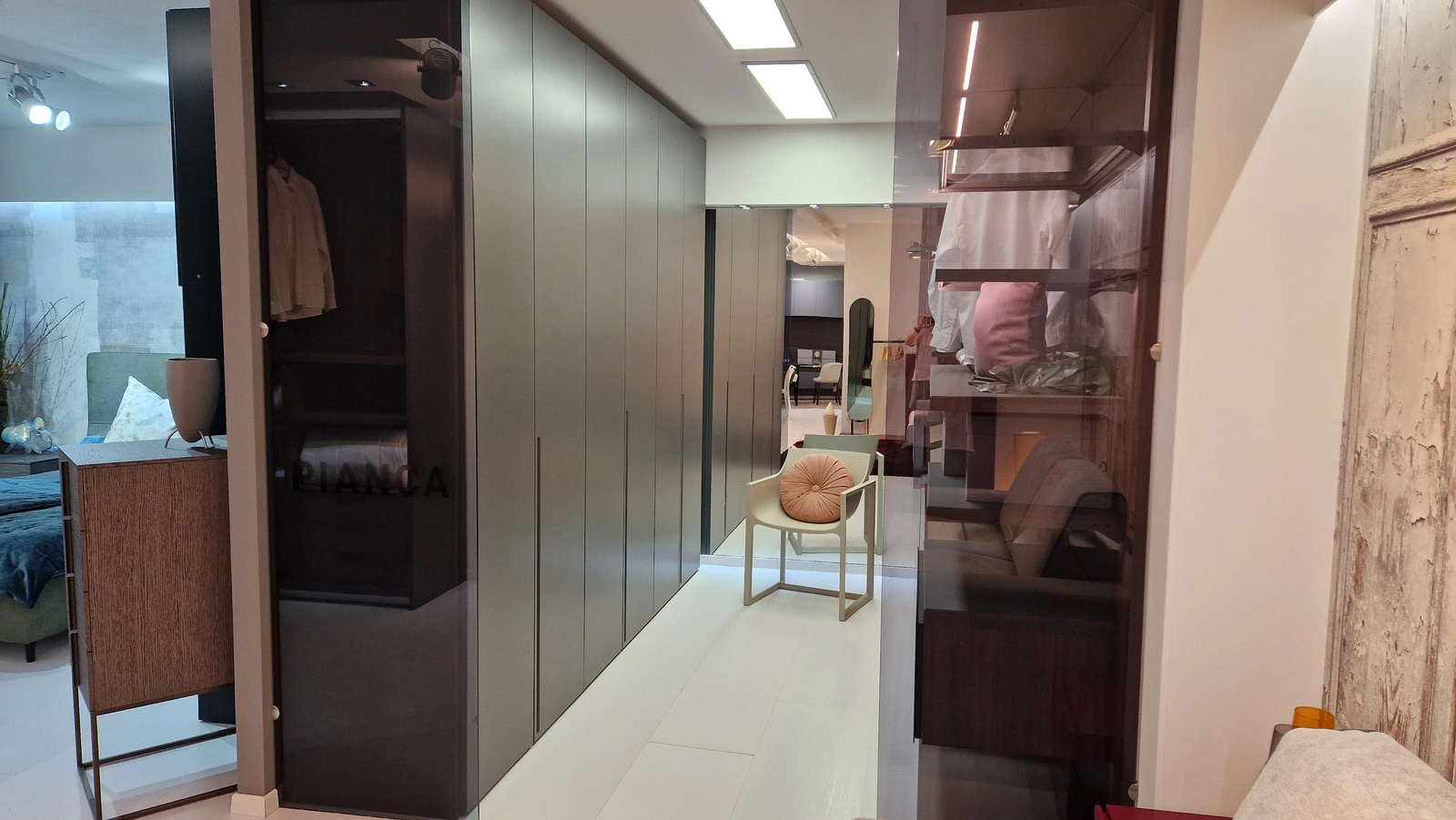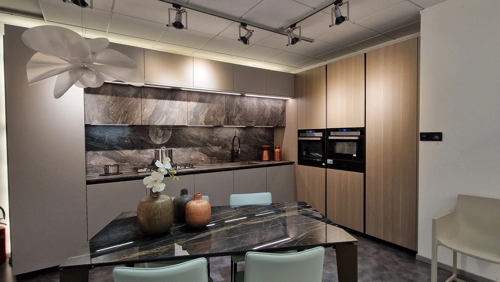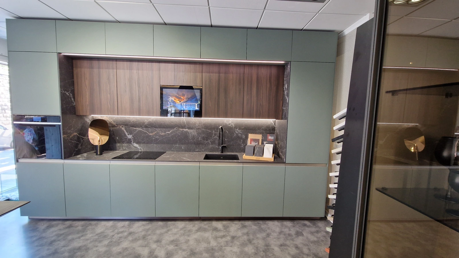 Gran parte dello spazio espositivo è dedicato alle cucine. Sono esposte composizioni importanti e sempre attuali, che permettono di toccare con mano la qualità dei prodotti esposti e di valutarne funzionalità e possibilità progettuali.